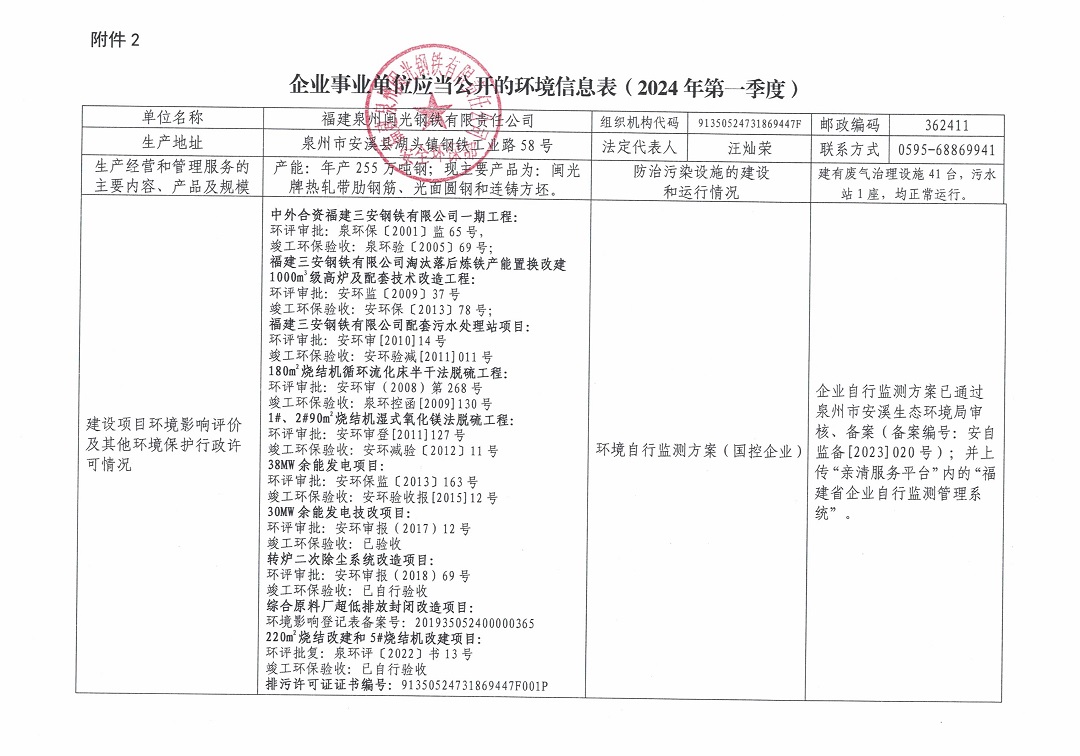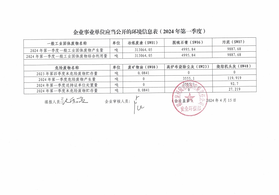 企業(yè)事業(yè)單位應(yīng)當(dāng)公開的環(huán)境信息表(2024年度第一季度)