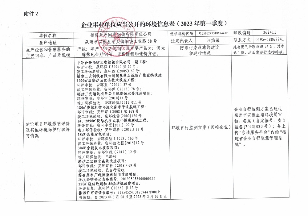 企業(yè)事業(yè)單位應(yīng)當(dāng)公開的環(huán)境信息表(2023年度第一季度)